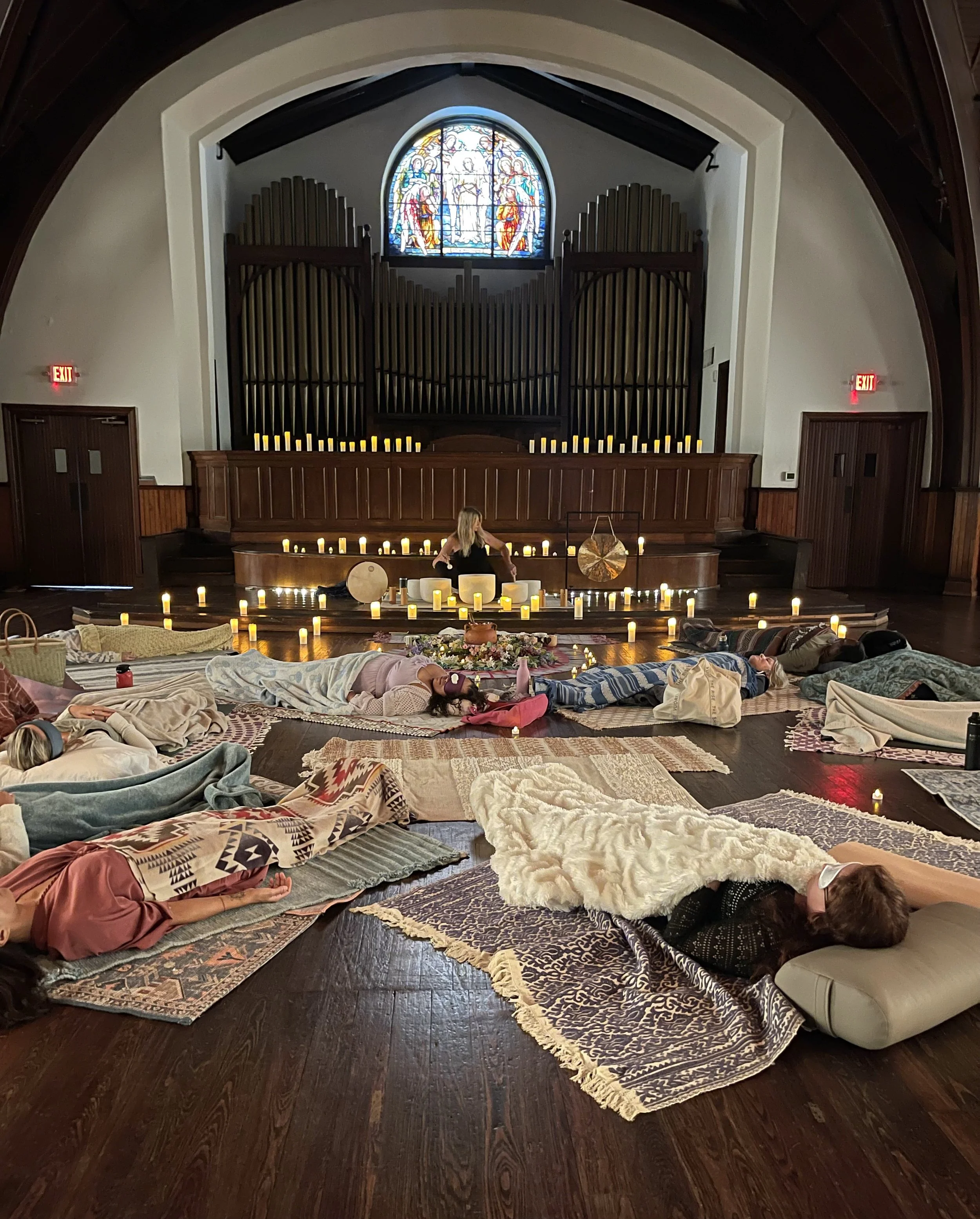 Participants of all ages are encouraged to bring yoga mats, blankets and pillows to allow them an opportunity to relax in any area of the church as they listen to healing sounds played by Rebecca Turk, founder and CEO of SNDBath.